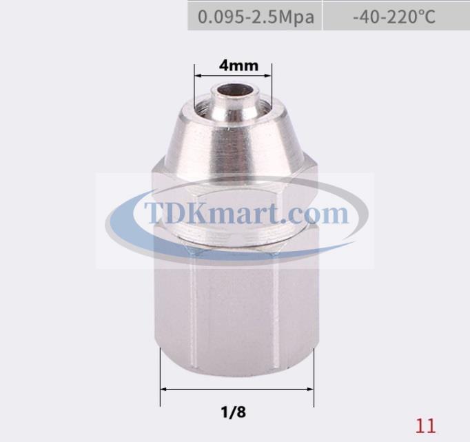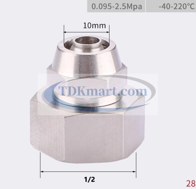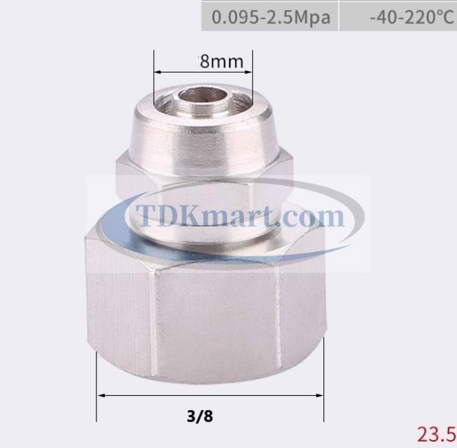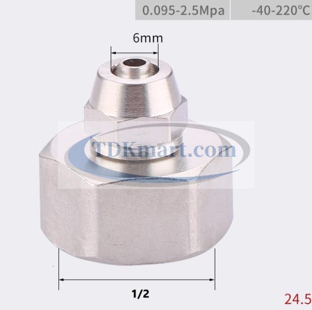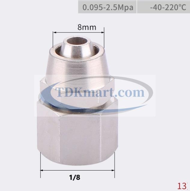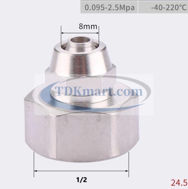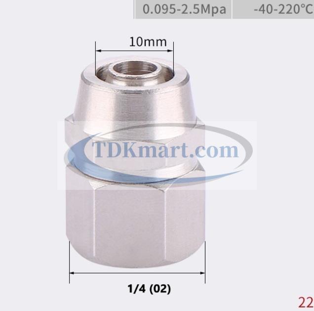 Đầu ren trong được gia công sắc nét, đảm bảo ăn khớp hoàn toàn với ren ngoài của thiết bị khí nén, giúp kết nối chắc chắn, không rung lắc, không rò rỉ khí.