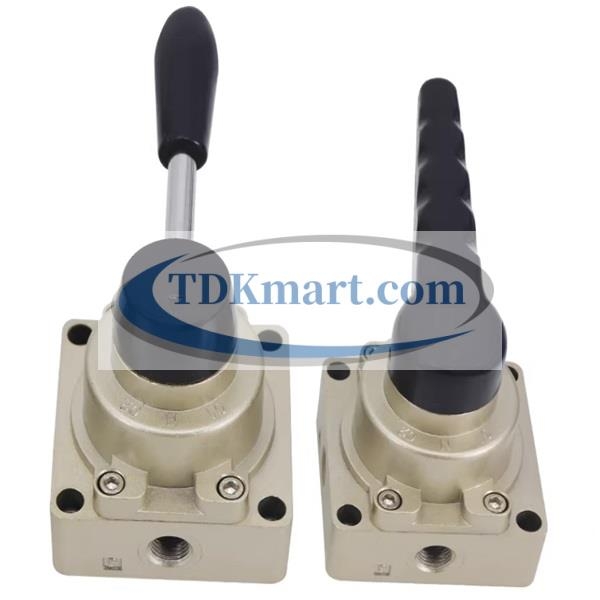👉 Nguyên lý hoạt động: Khi người dùng gạt tay van sang trái/phải, lõi trượt bên trong sẽ thay đổi vị trí, từ đó điều hướng dòng khí nén đến các cổng làm việc khác nhau (2/3/4/5 cửa tùy model).