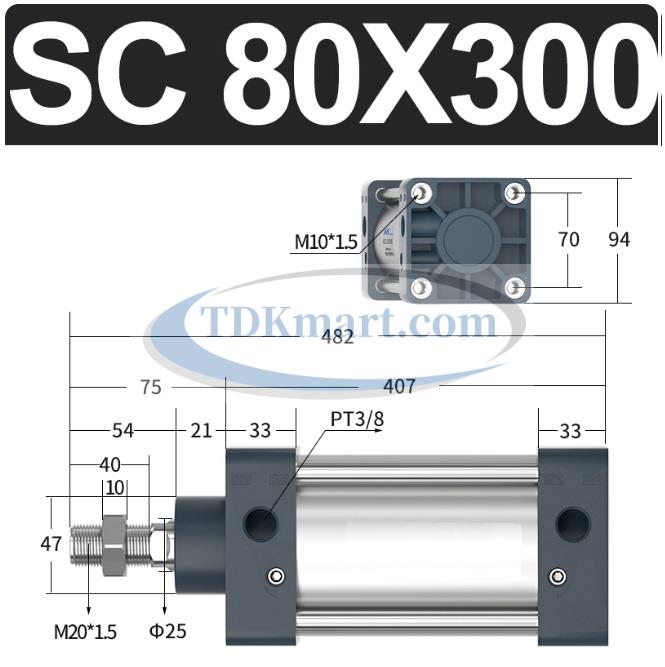 SC80X300-S : Xilanh khí nén có từ (có nam châm từ) SC80X300-S